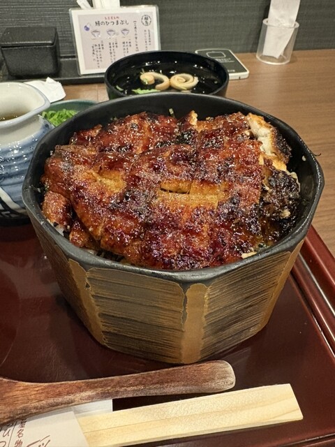 4月平日12時半ごろ。2名で利用。 お昼時×名古屋駅近×24席の小さいお店のためか、満席~。 前に2組待ちです。 ただ回転は早く、10分ほどで案内していただけました。 知らないおばぁちゃまと相席w 「上ひつまぶし(\3,200)」を注文! ちゃんと食べ方が明記されているので、初めての方でも安心です^^♪ 流儀にならって、 1度目は、そのまま。 2度目は... 詳細を見る