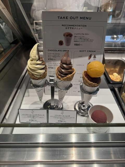 テイクアウトにもソフトクリームやアイスクリーム、チョコレートドリンクなどがあり、店内のテーブルでイートインで頂けます。それなら並ばな...