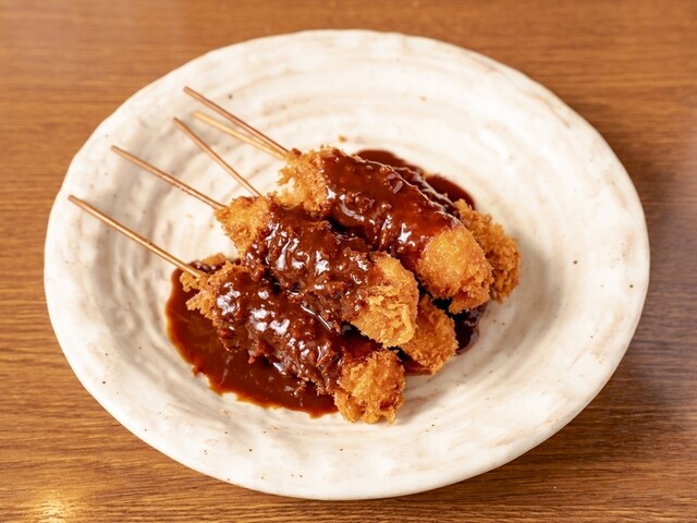 カウンターのみ構えたアットホームなお店で、サクッと揚げたての串揚げをリーズナブルに食べられると、1980年の創業以来多くのお客様から愛されています。串揚げの食材は新鮮な肉・野菜・魚貝など合わせて50種類以上。季節の串揚げもございます◎パン粉や油にもこだわり、オリジナルソースと味噌の2種類のタレは創業以来変わらない秘伝の味。名物上ロースの味噌串カツやハッピーアワーの生中&串揚げもオススメです!