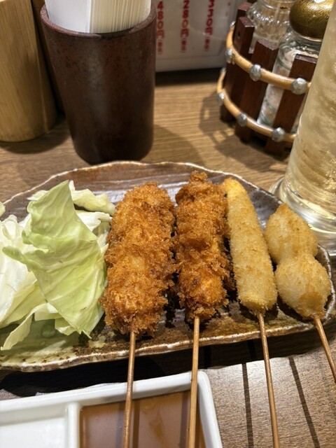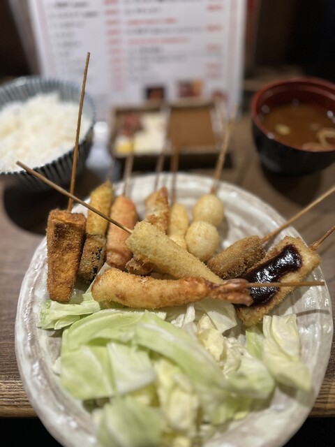 ◆訪問時評点 3.45 ◆お店について こちらは串揚げ屋になっておりお昼は550円の弁当が売られていたり、とてもリーズナブルにランチメニューが楽しめるお店です。 ... 詳細を見る