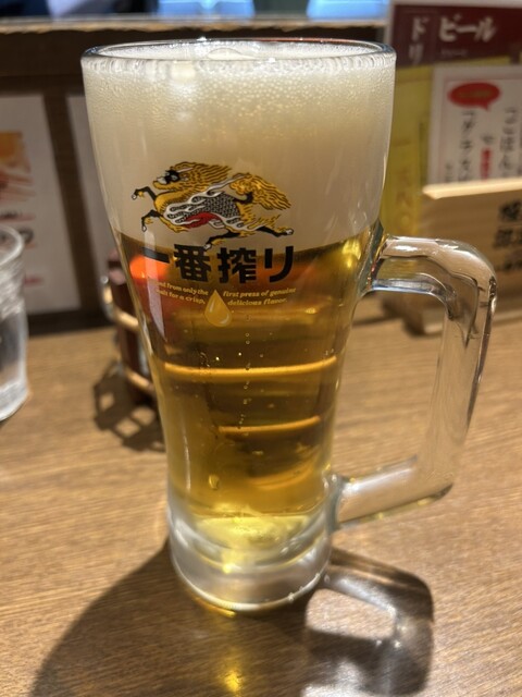 味串さんも満員でしたが、奥の2席だけ空きあり。そちらに案内いただきます。生を2つ注文し、メニューと睨めっこです。