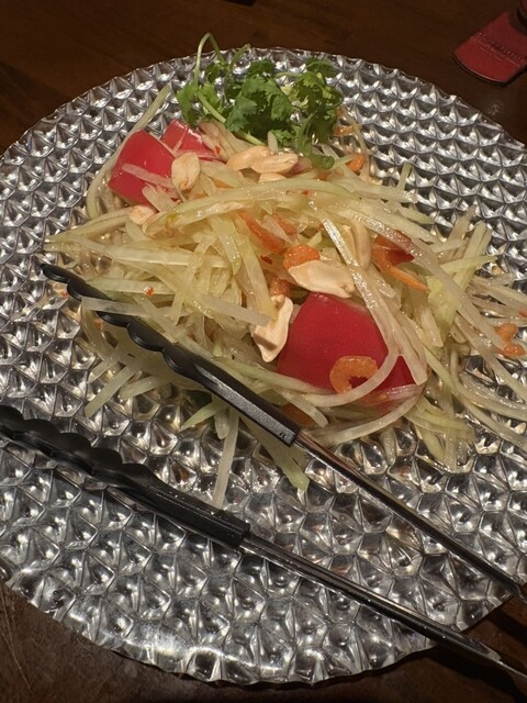 駅近で美味しい本格タイ料理が食べられるお店。後輩と2人で訪問しました。平日ランチ時で、適度な混み具合。オーダーしたのは、こんな感じ…