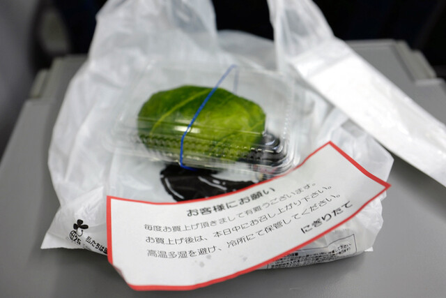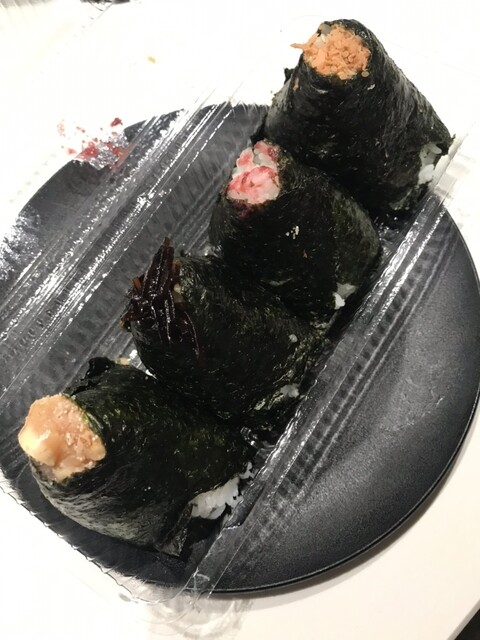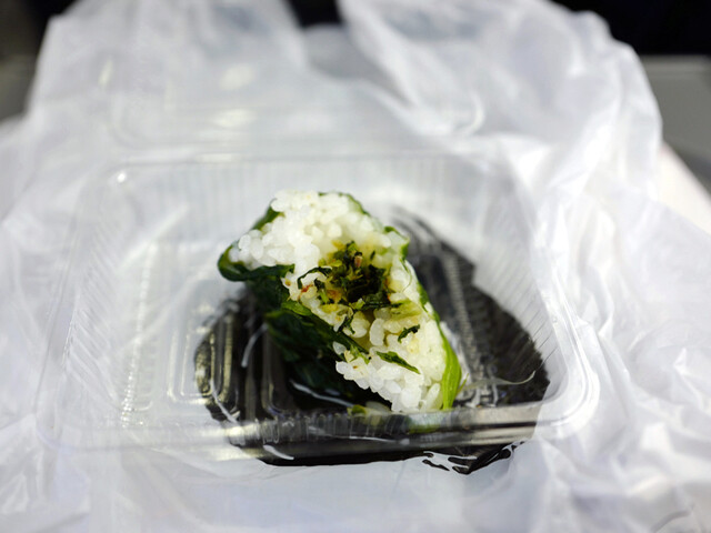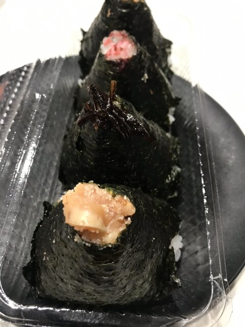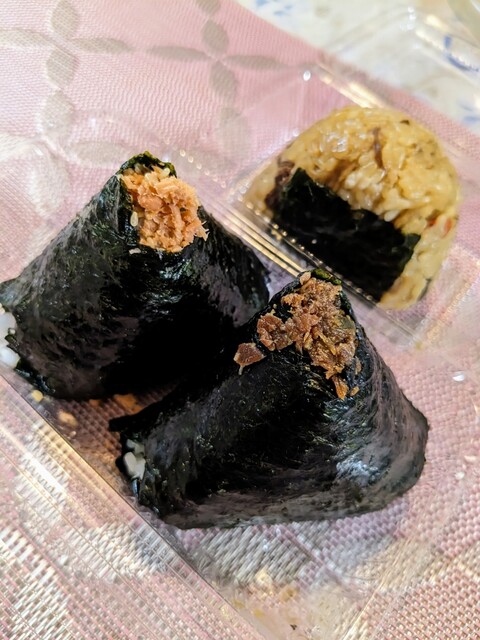 移動の途中、小腹がすいておむすびを買う。