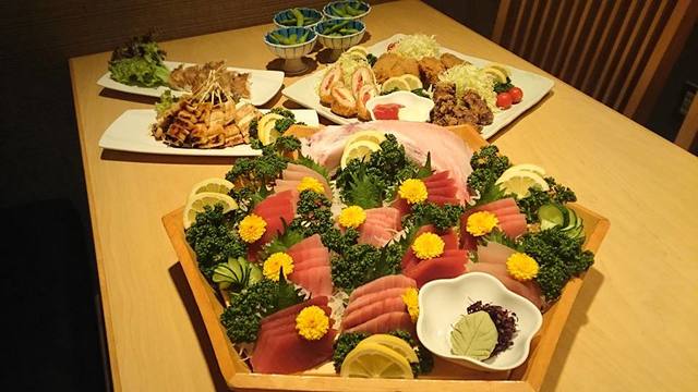 市場を通さず 築地、焼津など産地から直接仕入れをしてます。 名物『ホホ肉の唐揚』はリピーターに大人気 ・。゜☆ランチ営業もしております☆゜。・ 魚好きな方にはもちろん、会社帰りやカップル、宴会等 どんなシーンにも御活用頂けます。 お料理と一緒に楽しむお酒も取り揃えております。20名様からお店貸切も可能です!周りを気にせず楽しめて、会社宴会にもピッタリです♪お客様の御来店お待ちしております。