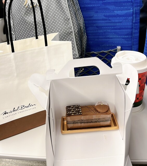 やっと購入できました。ミシェルブランのケーキです。なかなか購入できるタイミングがなく…年末は高島屋の贈答用菓子売り場はものっすごい混雑でしたが、こちらはまあまあすいていてよかったです。持ち歩き2時間です。