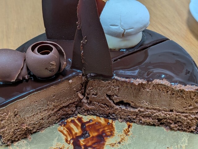 2年続けてクリスマスケーキは【ミッシェル・ブラン】にしてみました。昨年とはちょっと違う種類ではありますが、ビターチョコレートとスイートのムースが合わさった見事なアントルメです。
