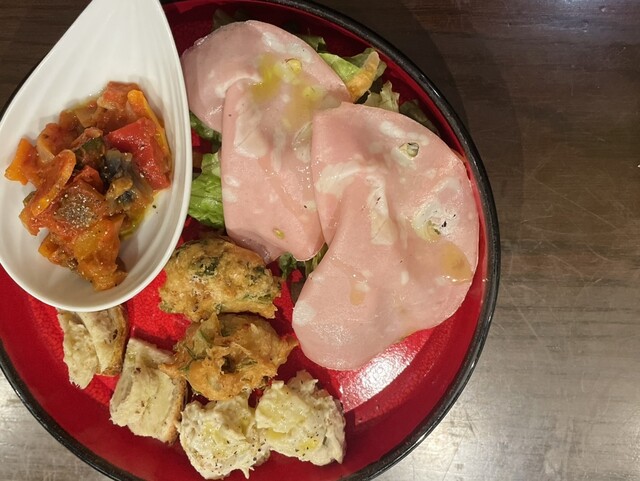 再訪のため注文内容のみ記録(※その他情報は初回投稿に記載) ◾️注文料理/商品 ・お通しバゲット ・炙り鰆カルパッチョサラダ ・生ハムサラミ ・白子アヒージョ ・肉3種盛り ・さつまいもコロッケ ・牡蠣とほうれん草のトマトパスタ ・ソーセージポテト ・蟹と蟹味噌リゾット …どれ... 詳細を見る
