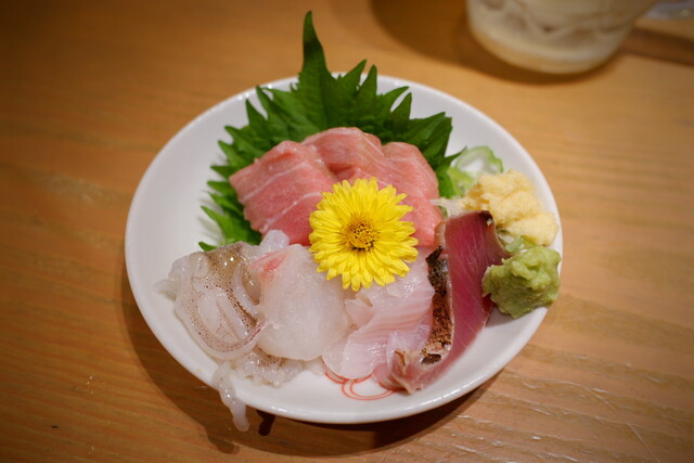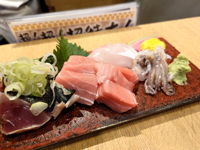 名古屋市中村区にある居酒屋、平日の21時頃に訪問。 カウンターに案内され、このメニューを注文してみた。 ★ メガ角ハイボール 769円 ★ 刺身盛り合わせ 659円... 詳細を見る