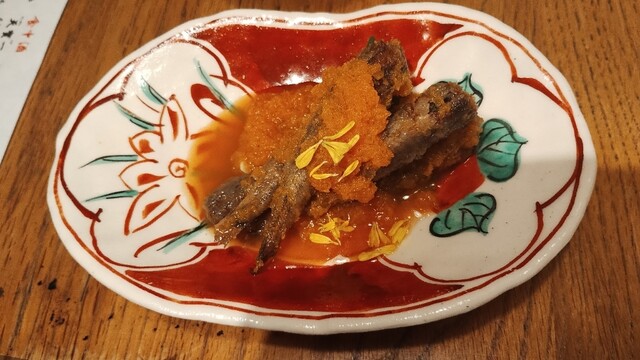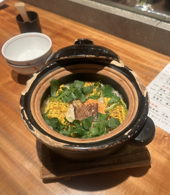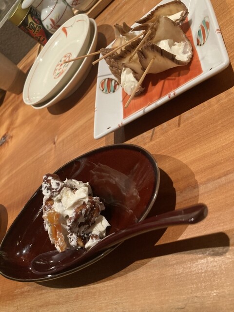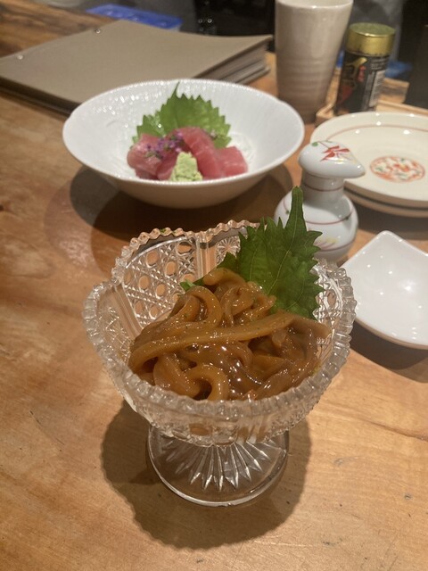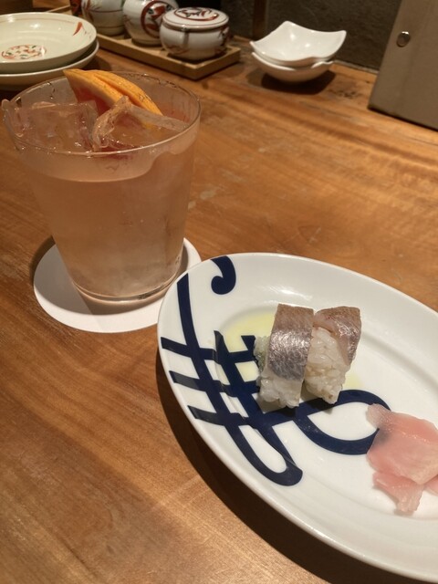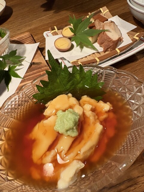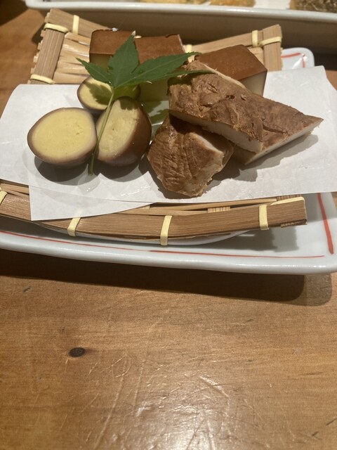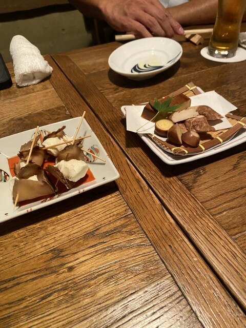 お酒はビールの後、赤兎馬のソーダ割りから日本酒へ。店員さんに進められるがままに三重の瀧自慢はやせ、そしてメニューにないおすすめの新酒で山...