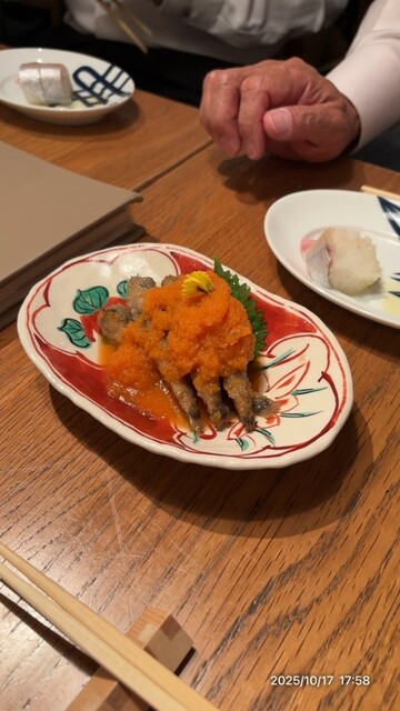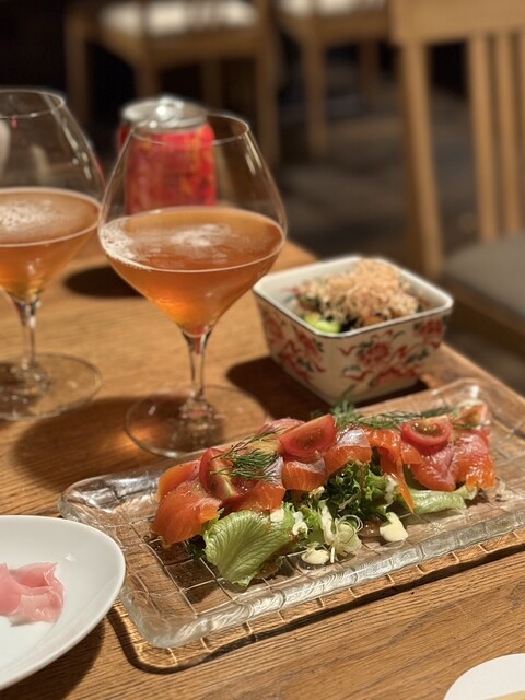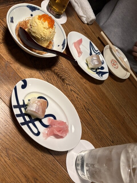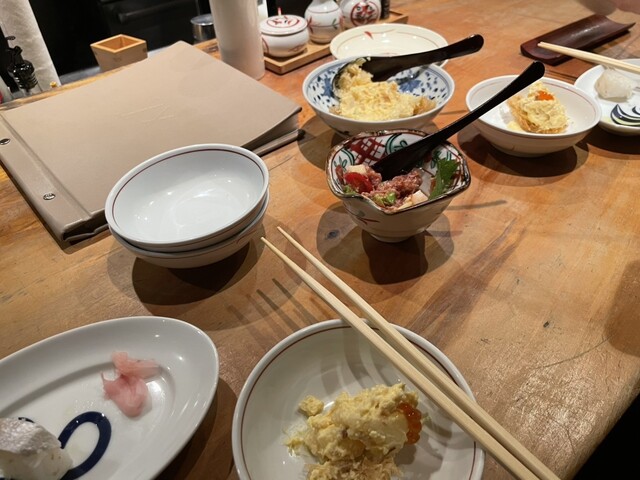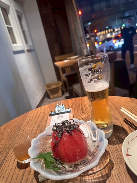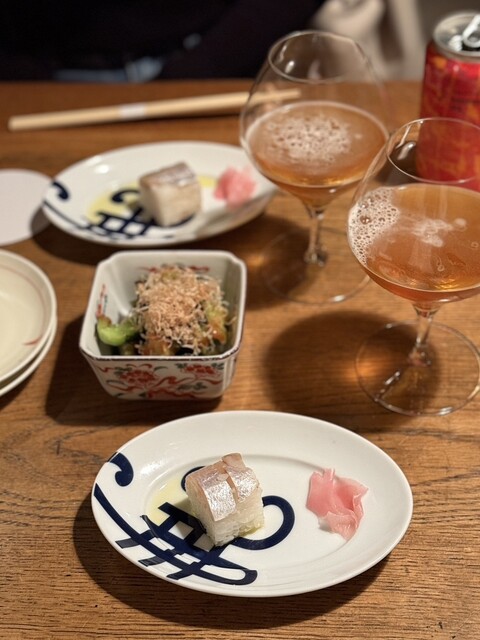 今日は名古屋で研修の後、こちらのお店に訪問。事前にカウンターを予約しました。ビールからスタートし、店員さんオススメの日本酒を言われるがまま注文。違いがよく分からないですがとにかく旨い。そしてお料理は和...