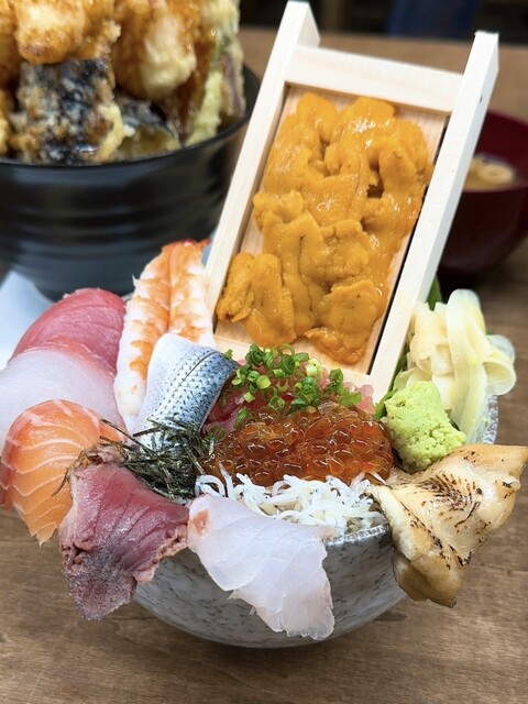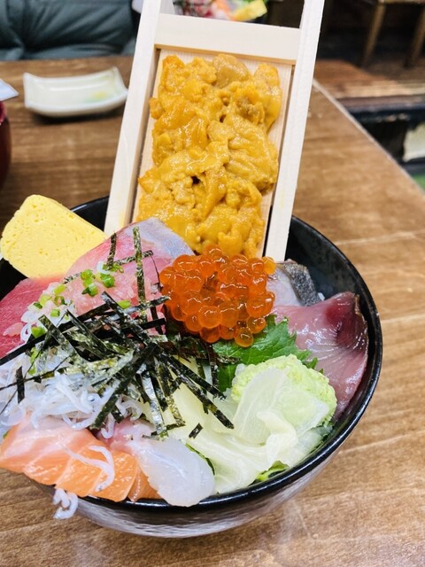 市場のとれたて鮮魚を美味しいお酒と一緒に―。 魚屋直営なので、その時期の美味しいものをしっかりと厳選してご提供。 11時から14時のランチにはこだわりの新鮮な魚介を使った海鮮丼や握り御前など、リーズナブルに海鮮を堪能いただけます♪ 朝から夜まで、様々な用途にお使い下さいませ。