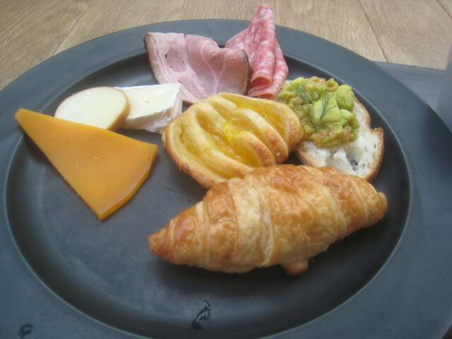 チーズ盛り合わせ、シャルキュトリー、マンゴーデニッシュ、Avocadoとジャガイモのブルスケッタ、クロワッサン
