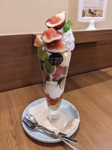 お買い物の疲れを癒す、ケーキやパフェなど、カリフォルニアスタイルのカフェ。
