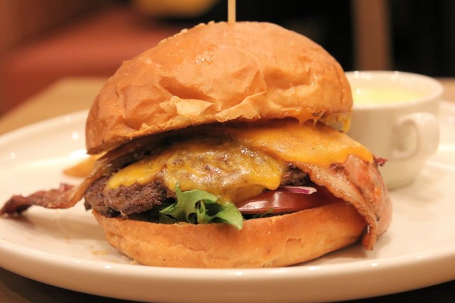 ボリューム満点のハンバーガー、サンドウィッチ、パフェ。