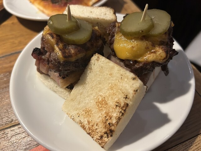 当店の基本コースとなります。 和牛をふんだんに使ったジューシーなパティと塩のみで作った脂の甘味と旨味が強いグリュン江南の無添加ベーコンを使ったビキニ(スペインのホットサンド)は必食です。もちろん名物のパエリアとバスクチーズケーキも楽しめ、飲み放題も付いているお得なコースです。