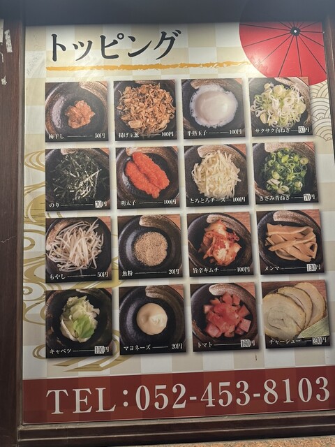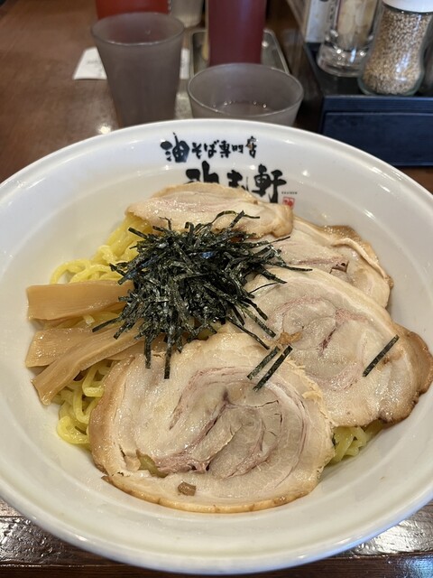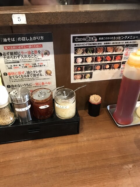 名古屋近辺で良く見かける油そばの専門店です。個人的にはこの油そばにそこまで特徴を感じませんが、店舗展開できているので、一定以上の味なのだと思います。店内はやや古めでしたが、清潔さはそこまで気になりませ...