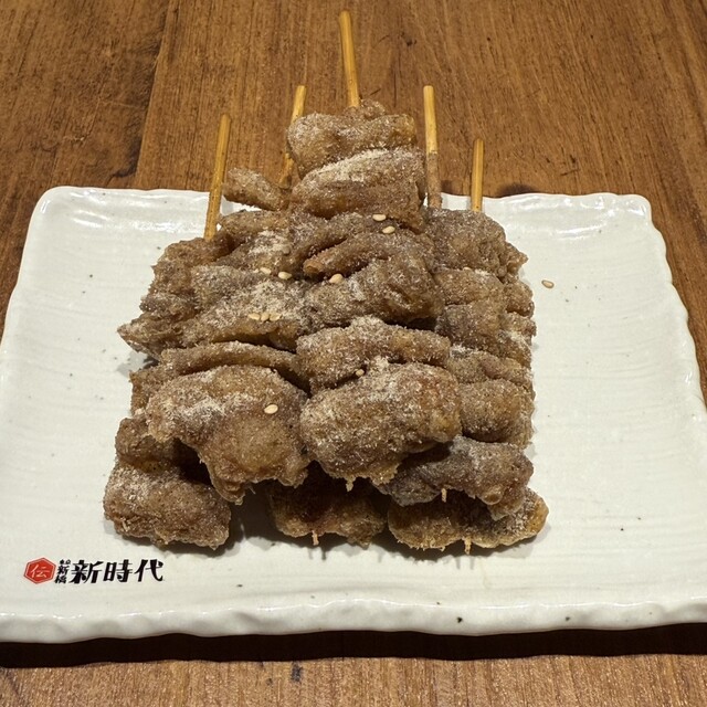 揚げ鶏皮串発祥の店【新時代】★名物『伝串』累計販売本数2億本!日本一のパリモチ鶏皮串