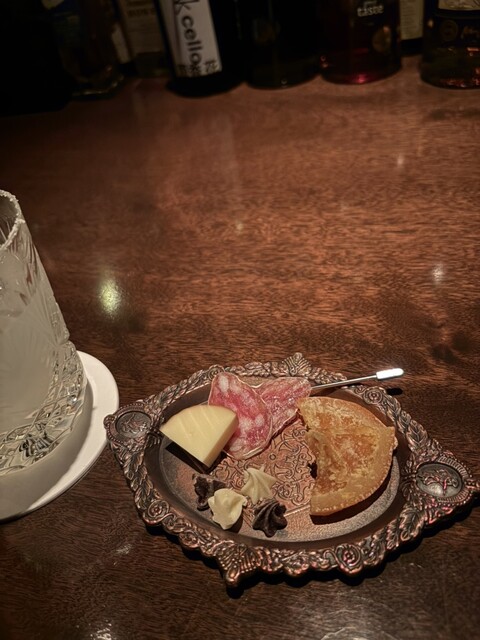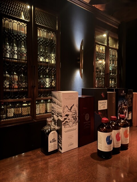 店内は真っ暗なカウンター席のみ。若い兄さんのアテンドで席へ着くととりあえず一服。目の前に最近気になっていた限定物のバーボンがありまずはこれから頂く...