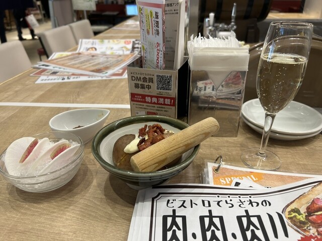本日は定休日。 20時からお客様を会食の前に、 0次会からの0.5次会へ‥ 名古屋駅のKITTE地下一階にある、 【大衆ビストロてらさわ】さんへ‥ そう!ここは、名古屋では有名な老舗洋食店、 マ・メゾンさんが展開する、新業態! 店内は、メニューの張り紙がぎっしり貼ってあって大衆的な雰囲気。 メニュー表も、手書き風ですごくカジュアルな感じで気楽にオーダーできます。... 詳細を見る