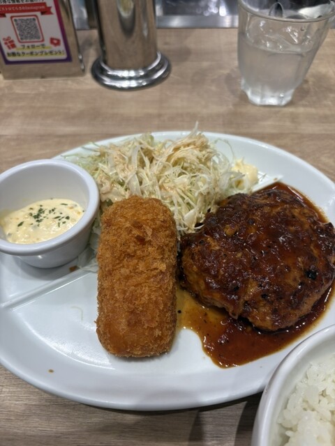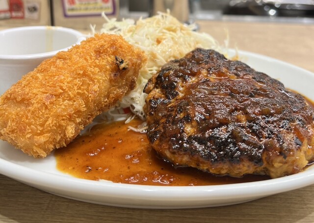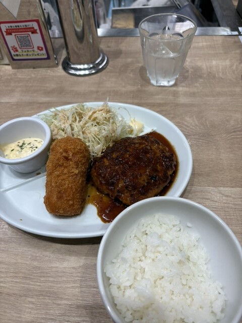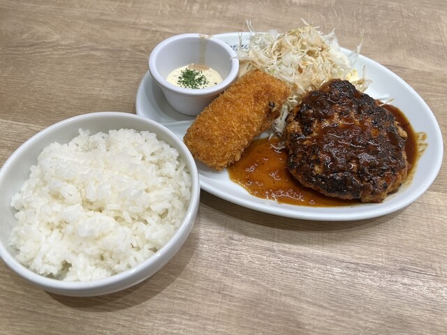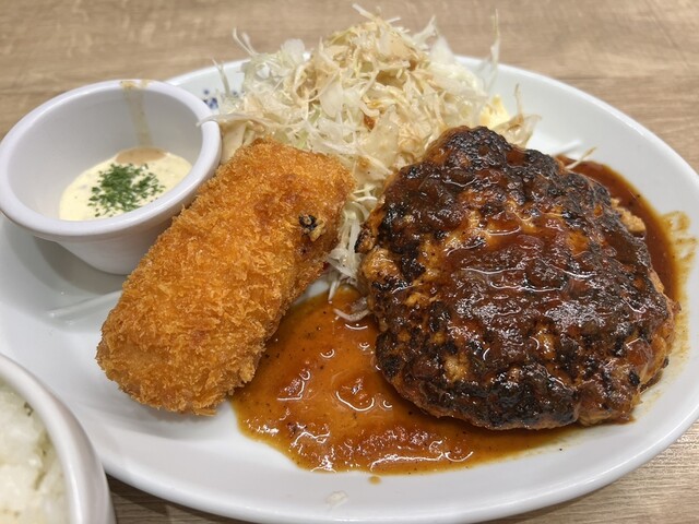 今回は「ハンバーグ&カニコロ定食」1,188円(1,298円から早割で-110円)をいただきます♪ライスは大中小から選べるライスは中にし...