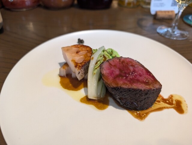 愛知県の食材と向き合ったクリスマス限定のメイン料理付きのコース 常滑の千賀ファーム、知多の精肉店 平山ショップ、鮮魚店 名鮮丸正 愛知の様々な業者様より仕入れた食材でその日限りのコースをご用意させていただきます。
