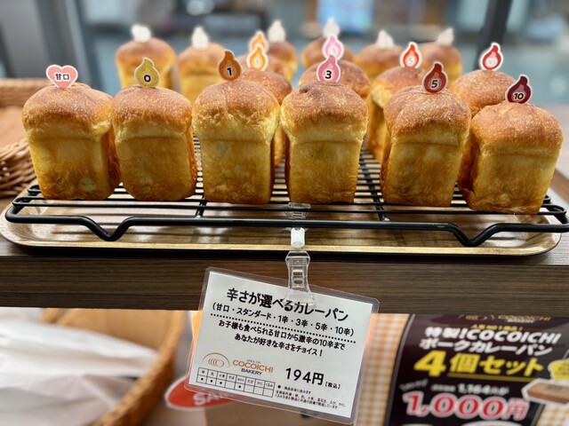カレーハウスCoCo壱番屋のベーカリー1号店。カレーパンやスパイスパンを中心に、惣菜パンや甘味パンなど種類豊富なパンをご用意しております。カレーパンは「ポークカレー」「甘口ポークカレー」「牛すじ煮込みカレー」「海老カレー」「チーズカレー」の5種類から選べます。他にも「カレーなる世界」と題した世界各国のカレーが入ったミニキューブ(角食パン)も6種類から選べます。食べ比べ、お土産に是非お使いください。
