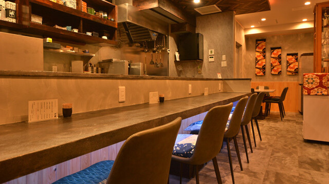 店内はこじんまりとしててカウンターメイン、奥にテーブル席もあります。