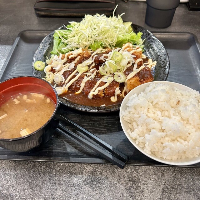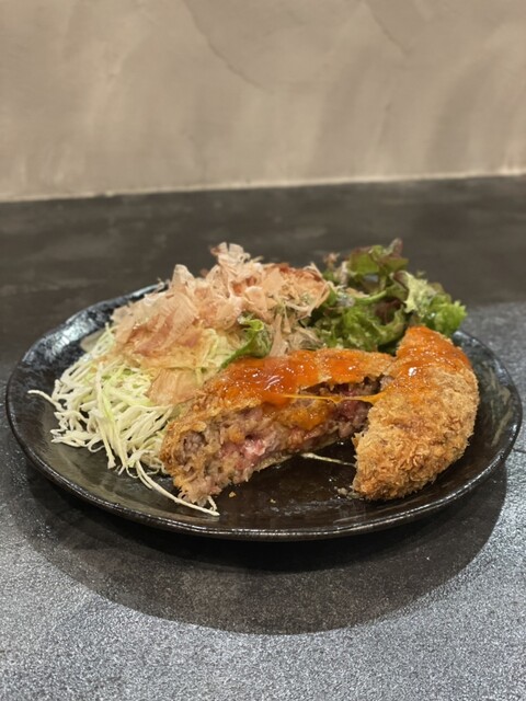 平日の午後1時頃に伺うと、先客は1人でした。 リニア工事のため通路が制限されていてぐるりと区画を一周することになってしまいました。 なんとかお店に到着。 メニュー左上の法則に従って、「黒毛和牛レアメンチカツ定食」を注文。注文が入ってからメンチカツを揚げていくので少し時間がかかります。15分... 詳細を見る