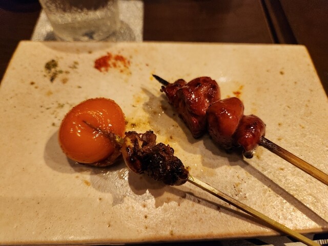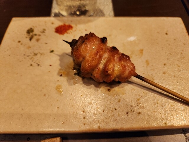 木曜日18時20分。当日、19時の予約を繰り上げていただきました。 カウンター席は焼いているのをそばで見ることができて楽しい。熱々の串が皿に置かれます。どれも臭みなく柔らかく... 詳細を見る