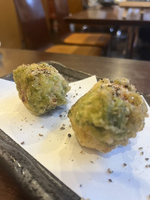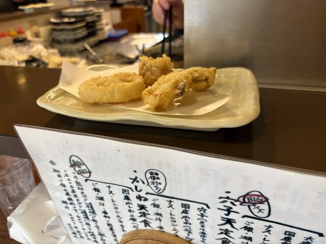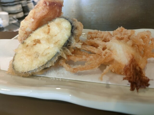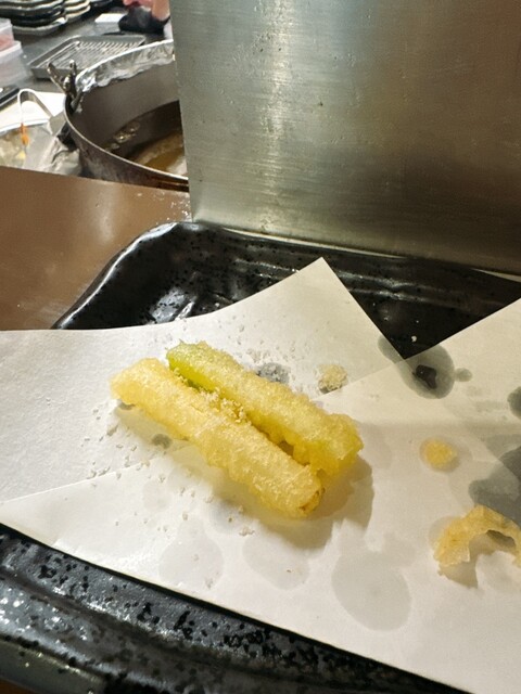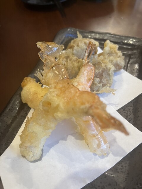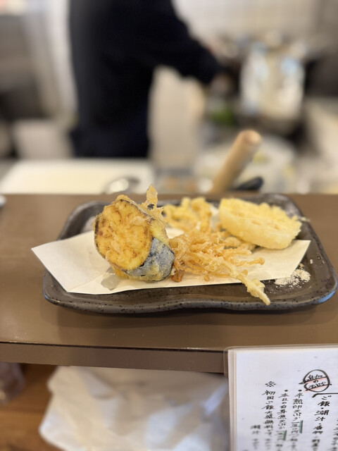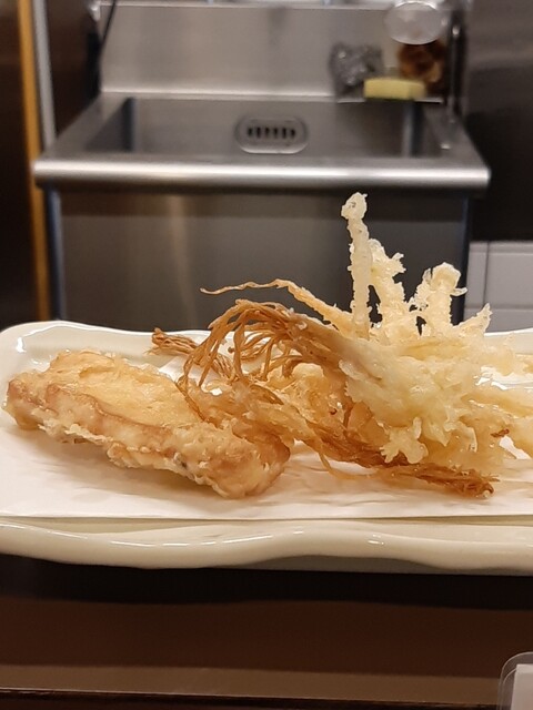 おまかせで天ぷら5品出してもらい あとは追加で前菜と天ぷ...