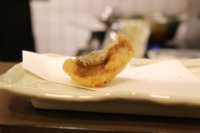 まず注目したいのは、カウンターでいただくライブ感。オープンキッチンの目の前で天ぷらを一つず...