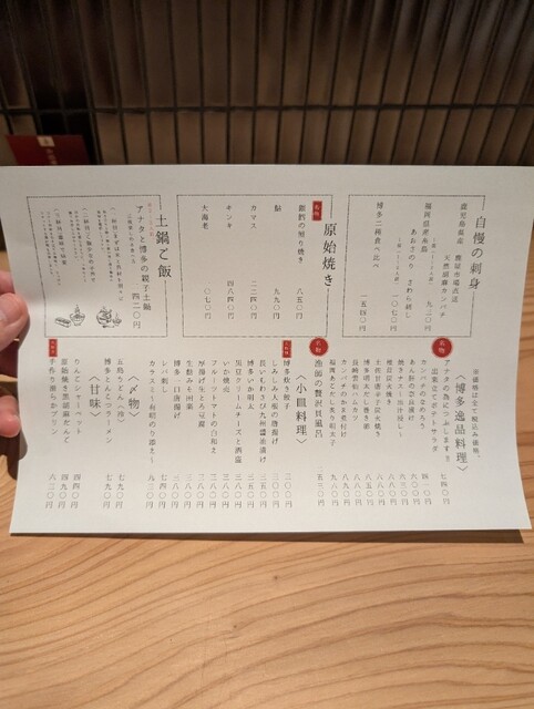落ち着いた照明と炭火の香りが広がる空間で、 “大人がゆったり楽しめる博多料理” をテーマにしたお店。