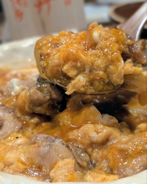 とろりと半熟の卵とじ、中央の卵黄が合わさるともう無敵。