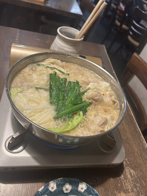 西宮北口の南東の改札を出て3分くらいのとこにある和牛もつ鍋が食べれる店。階段を上がって2階にある、店はこじんまりしたアトホームな感じ。