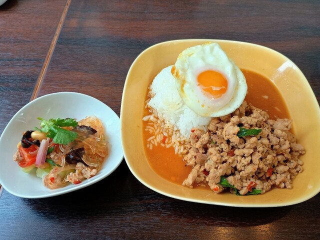 以前から気になっていた、水路のほとりにある「加藤商会」という看板のかかった歴史のありそうな古くてかっこいいビル。 中身はタイレストランでした。 調べてみると昭和6年築のこの建物は、いまでは国の有形文化財に登録されている建物のようです。 内装も昭和初期にタイムスリップしたような趣で、ダークな色合いで落ち着いた感じのインテリア。 2Fのテーブル席に案内されました。 さっそく、パッタイ(1... 詳細を見る