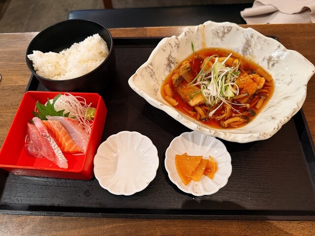 この日の平日ランチは魚料理の人気店。雨模様の13時手前でしたがしっかり満席。相席で4人掛けテーブルにチェックインします。オーダーは軒先にある手書きの立て看板からチョイス。メニュー毎... 詳細を見る