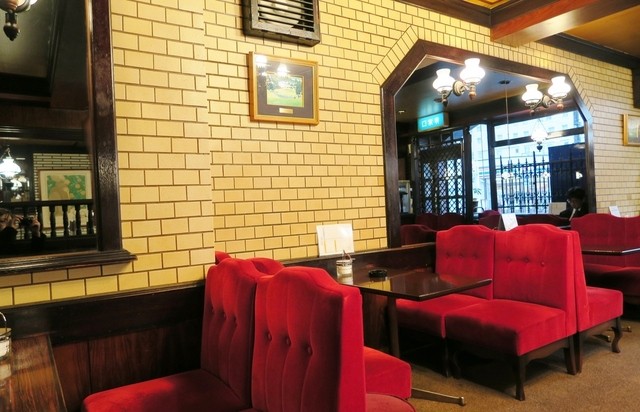 店内は真っ赤。昭和の豪華な喫茶店という