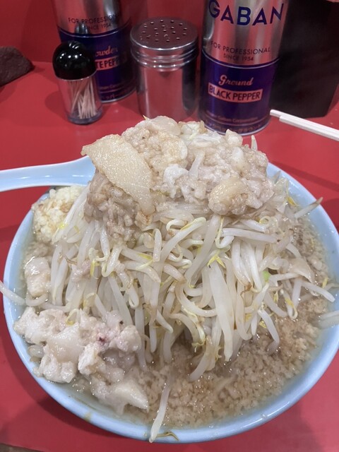 普通盛り1000円 麺半分 ニンニク無し 野菜普通 カラメ 脂普通 本日のメインイベント二郎系。 本来なら普通麺でニンニク増しなのだが、対面の用事に行くので泣く泣くニン... 詳細を見る
