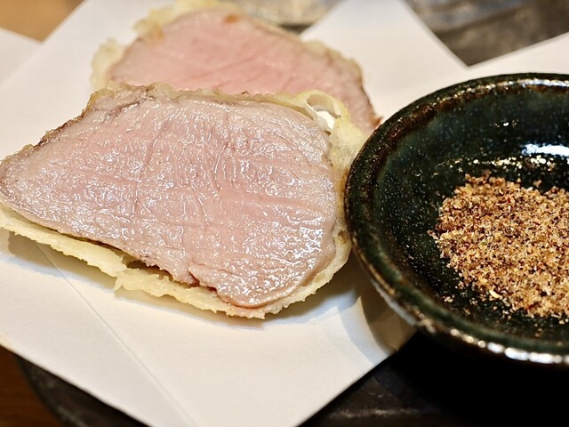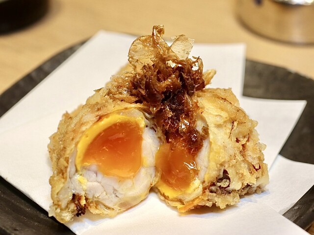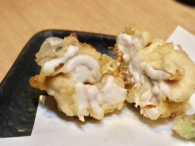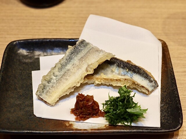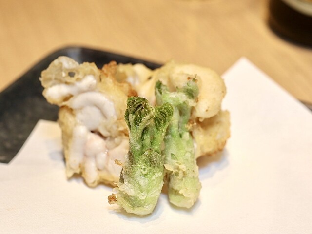[2020年5月再訪・写真11枚追加] とある休日に久しぶりに訪問です。 今回もエビに紅しょうが、ポテサラ、長芋、舞茸などいろんな種類の天ぷらをいただきましたが、火入れ加減が絶妙でしっかりと甘みが引き出されたエビにしっかりした刺激でお酒がススム紅しょうが、ほっこりした食感がたまらないポテサラなどどれも美味しくいただけました。 やっぱりココの天ぷらは美味しいですね、今回は日本酒は自粛し... 詳細を見る