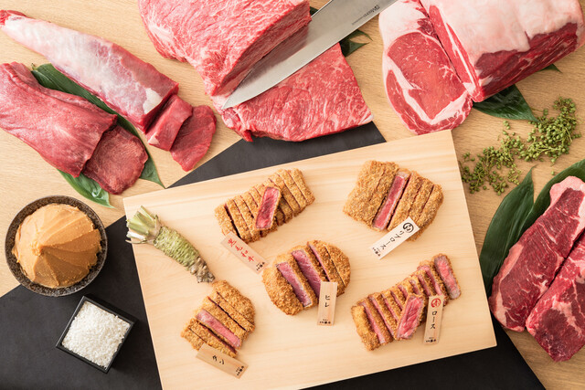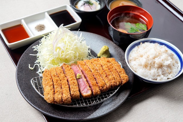 牛肉本来の旨みにこだわり吟味した、厳選部位のみを使用。 香ばしい衣をまとわせ、高温・短時間でサッと揚げる。 旨味を最大限に引き出された牛カツは、中はミディアムレア、外はサクサク。 まるでステーキを食べるかのような肉厚。 溶け出す脂はわさびで締めて食べるのが勝牛流。 ・たれカツ重:880円~ ・牛ロース牛かつ膳:1280円~ ・生ビール:150円~ 是非、お楽しみください