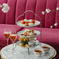 苺と桜を主役に、春の彩りを詰め込んだアフタヌーンティー。 やさしい甘さと爽やかな香りが重なり合い、軽やかで華やかなひとときをお楽しみいただけます。