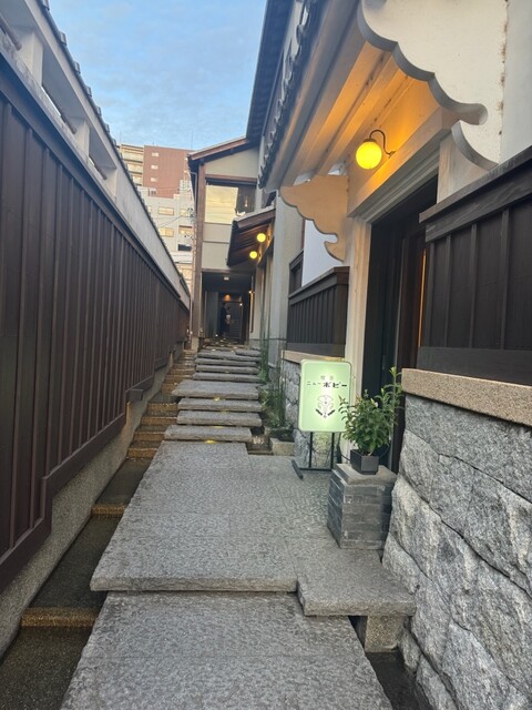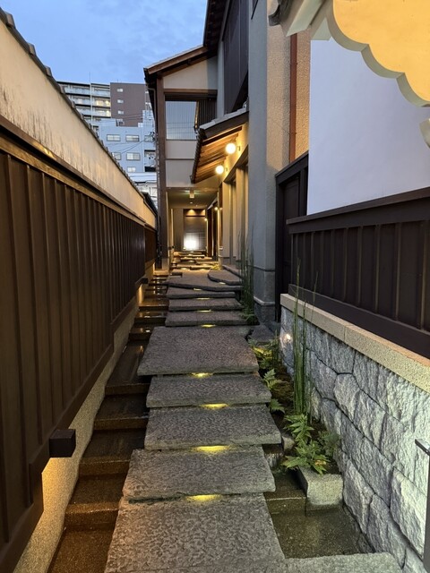 四間道を円頓寺商店街に向かって歩き、白壁の合間に奥へと続く石畳の階段を