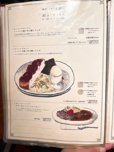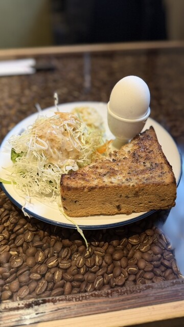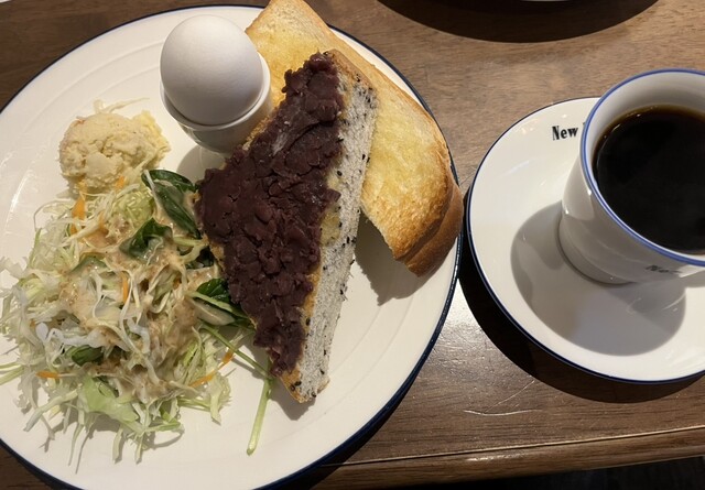 モーニングセットにはゆで卵、サラダ、ポテサラ...