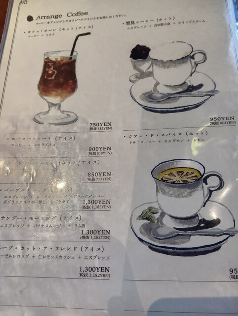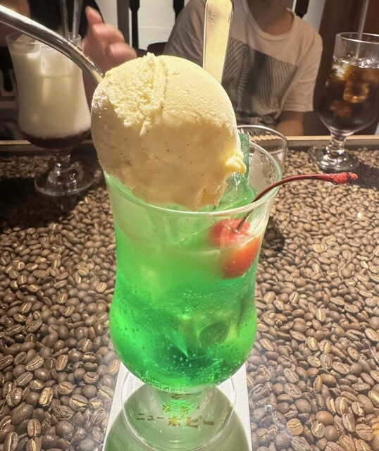 店内は雰囲気とても最高!よったりと落ち着いた空間が素敵でした!メニューは豊富でコーヒーにも種類がとてもありアイスコーヒーとメロンクリームソーダを頼みました!どれも味はとても良かったです!それに机にコー...