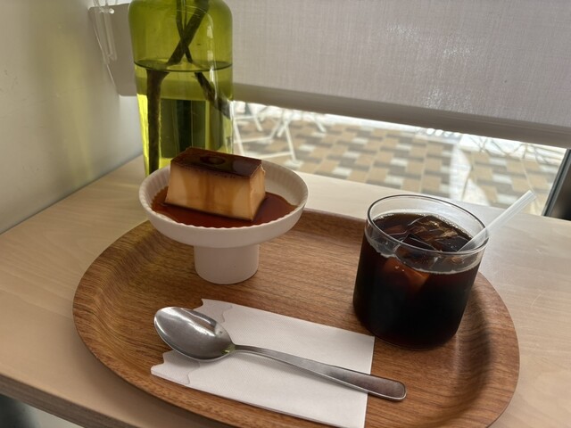 小倉トーストなども気になりますが、今回はアイスコーヒーに硬めのプリンを。