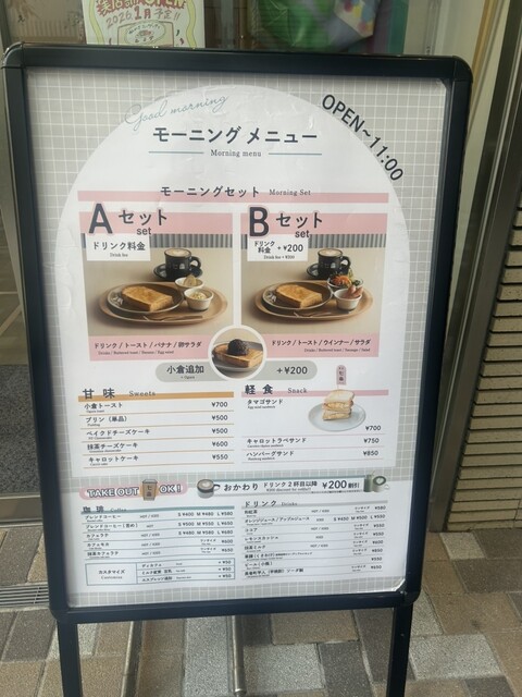 家族で訪問。モーニングを頂くために8時半に来店。3人の方が待たれてて、店内は満員。ビジネス街なので回転も早いかと思っていると、カップルでまったり過ごしている方や海外の方も来られているご様子。グローバル...