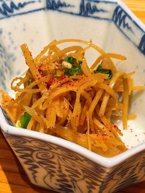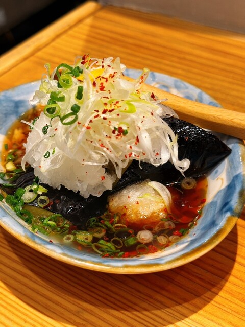 すぐに黒板に書いたメニューをもってきてくれたので、その中から、しいたけ焼き、きんぴらごぼう、餅と茄子の揚げ出しをお願いしま...