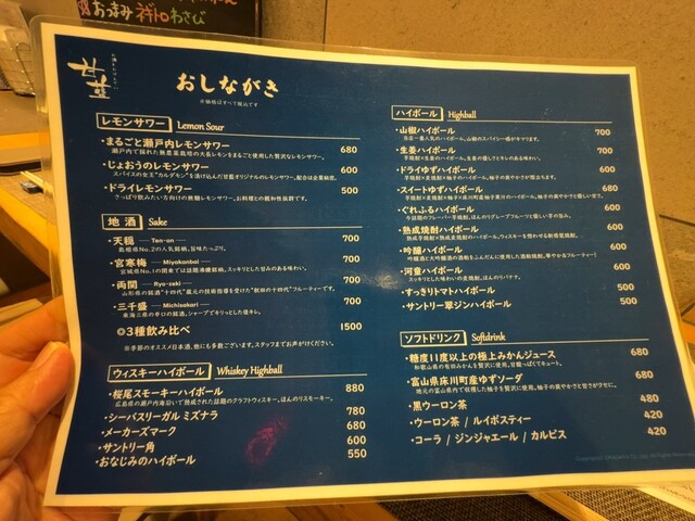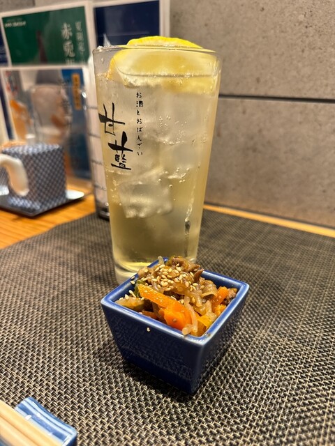 とりあえず角ハイボールを、同行者はまるごと瀬戸内レモンサワーを注文。
