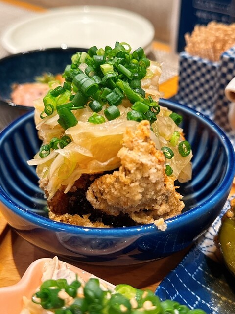 アテは、おばんざい盛り合わせ3種をお願いする。ひとつだけどうしても食べたいもの聞いてくれたので、揚げ鶏のネギだく南蛮酢和えをお願いする。ほか2つはおまかせ。
