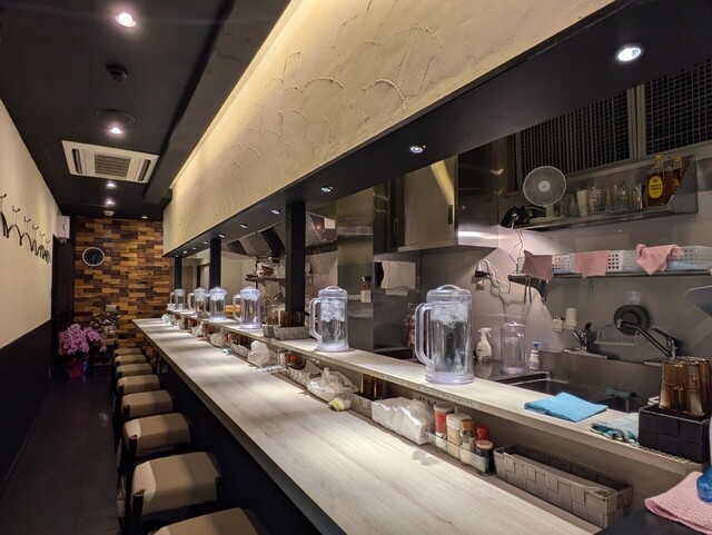 看板メニューは国産鶏ガラをじっくり煮込んだ「鶏そば」。讃岐うどんの小麦粉を使用した自家製麺は、喉越しの良いもっちり食感に仕上げました。濃厚な味わいのエスプーマ状のスープはコラーゲンも豊富。低温調理による柔らかなレアチャーシューも楽しめます。あっさりとした「鶏中華そば」もございますので、お好みに合わせてどうぞ◎明るい店内には、カウンター席を完備。仕事帰りや飲み会の〆など、お気軽にお立ち寄りください。